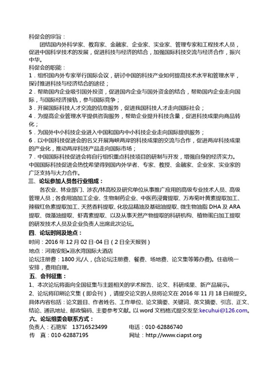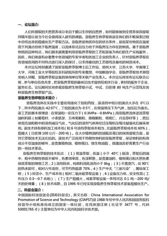 首屆亞臨界生物萃取技術發展論壇邀請函