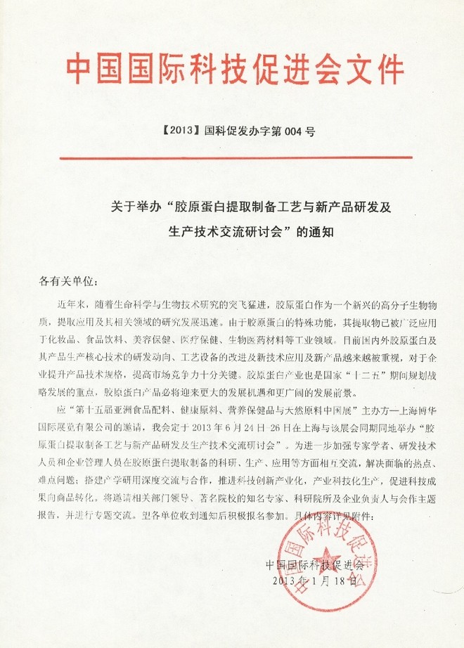膠原蛋白提取制備工藝與新產品研發及生產技術交流研討會